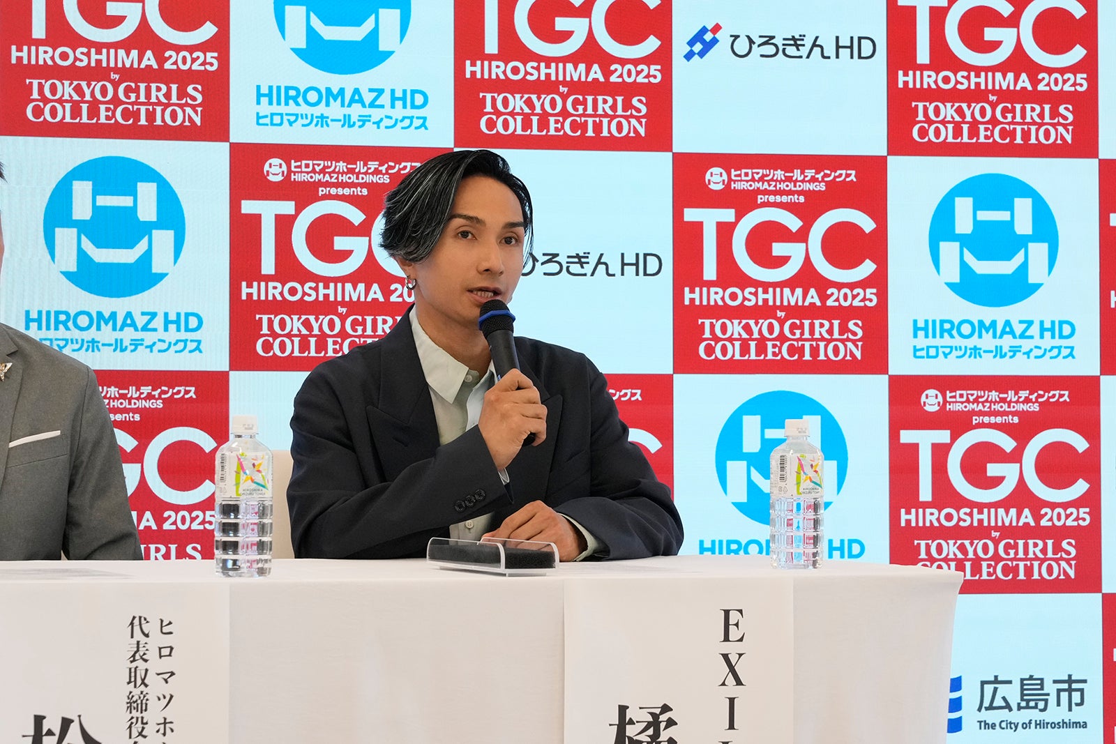 さらに、日本を代表するエンタメカンパニー2社が仕掛ける唯一無二の地方創生プロジェクト「W TOKYO×LDH JAPAN 地方創生プロジェクト」が、当プロジェクト11都市⽬として「TGC 広島 2025」に初上陸することが決定。記者発表会に、LDH JAPANのSocial Innovation Officerを務める橘ケンチが登壇し、プロジェクト実施に向けた想いを語った。