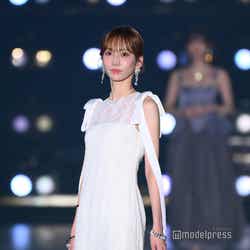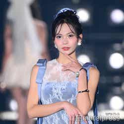 ランウェイを彩ったのは、きほ本人をはじめ、ABEMAで配信中のバラエティ番組「CHANCE & CHANGE(チャンスアンドチェンジ)」に出演する、あすか、つかさ、かれん、るあ、なち、りょう、まお、ゆめ、渡辺みゆ、あやか、あん、あや。普段は華やかで綺羅びやかな衣装に身を包む彼女たちだが、今ステージでは一人ひとりの本来の美しさが引き立てられたスタイリングで新機軸を打ち出した。きほはウエスト部分のフリルがポイントとなったロングワンピース姿で登場。シンプルだがメリハリがあり、スタイリッシュなメイクで"大人の可愛さ"を最大限に表現した。ほかにもショルダー部分にリボンが添えられたサテン×レースのワンピースや、ミニ丈デザイン×ブラック・ダスティピンクの色合いでセクシー&キュートを融合。シークレットゲストのデヴィ夫人は、バックスタイルのドレープが揺れるゴージャスなデザインのドレスを着こなし、観客を沸かせた。