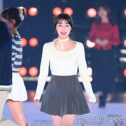 ホワイトのトップスにチョーカーを合わせて登場した高橋。ミニ丈のプリーツスカートとロングブーツからは美しい脚をのぞかせた。「関コレ」テーマは「For U」