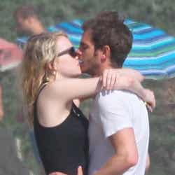 スパイダーマンカップル、エマとアンドリューがビーチでキス