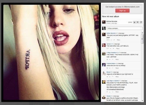 米アーティストのレディー・ガガが、SNS「LittleMonsters」で新タトゥーをお披露目した。