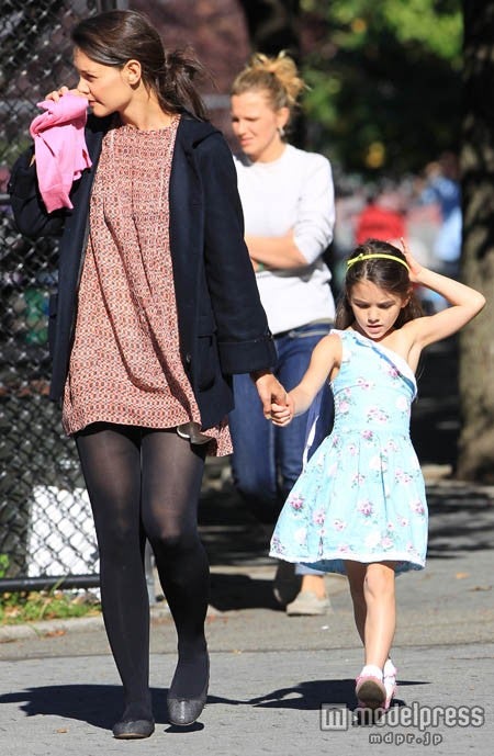 父トム・クルーズがいなくても元気?スリちゃん、高そうなワンピでジャングルジム遊び