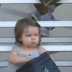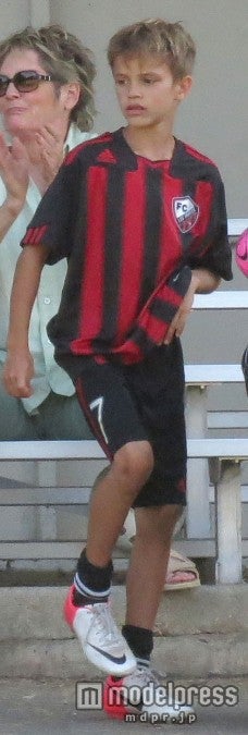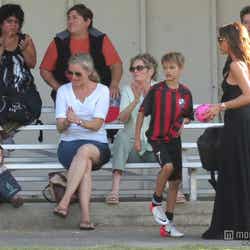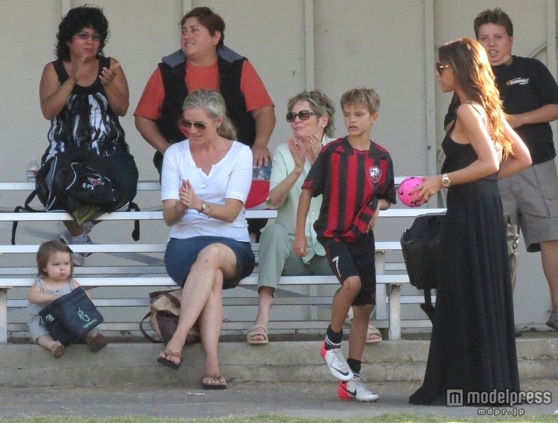 29日、息子たちのサッカーの試合の応援にやってきたヴィクトリア・ベッカムとハーパーちゃん。ハーパーちゃんは早くもサッカーに興味津々です!!