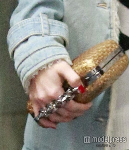 手にしているクラッチはかなりハードなタイプで、先端はまるで武器!