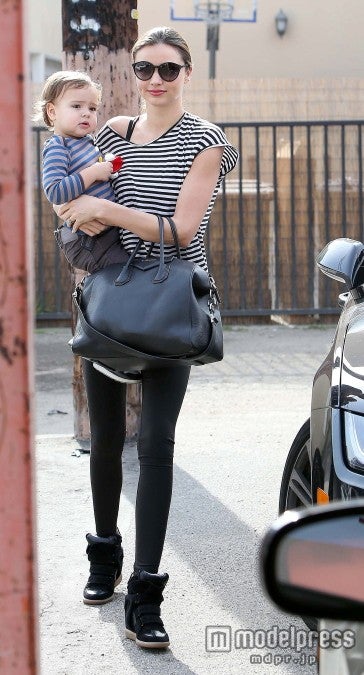 9日、フリン君を抱っこしたミランダ・カー(29)がキャッチされました。
