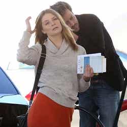 BFのイギリス人俳優、セバスチャン・ナップと給油をしていたのですが、赤いスカートが微妙にオバサンっぽいのが気になるところ。