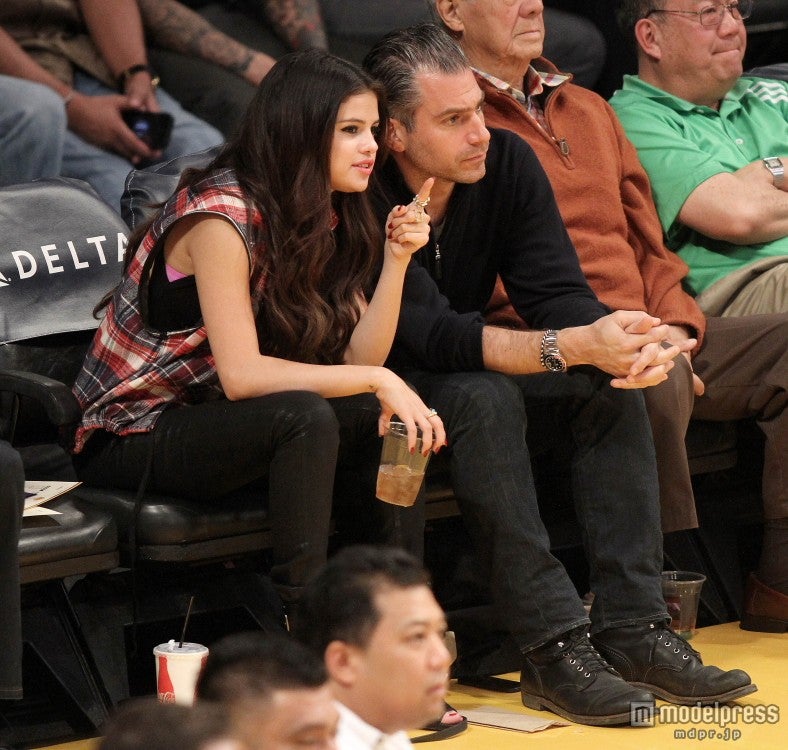 かつてはジャスティンと仲よく見に来ていたNBAですが、この日、セレーナの隣にいるのは、白髪まじりのかなり年上なナゾの男性。ゲームを見ながら、顔を近づけて何やらお話している様子です。