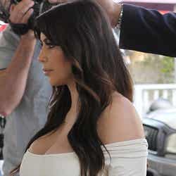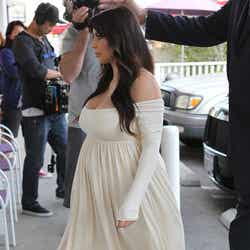 妊娠中もウエストをマークしたミニスカートを着用するなど、自らのファッションスタイルを貫いていたキム・カーダシアンが、ついにマタニティ風ドレスを着用しました!