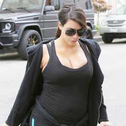 7月出産予定にもかかわらずジム通いに励んでいるキム・カーダシアンですが、ついにバストはウエアに収まらなくなってきました。