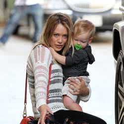 アシスタントは? セレブママのヒラリー・ダフ、子どもを抱えたふんばり顔を撮られる