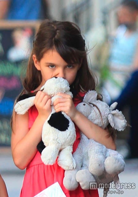 夏の昼下がり、ワンピーススタイルの母娘コーディネートがきまっているケイティ・ホームズと娘のスリちゃん。泣いていることが多かったスリちゃんですが、最近ではガンを飛ばすまで成長しました。