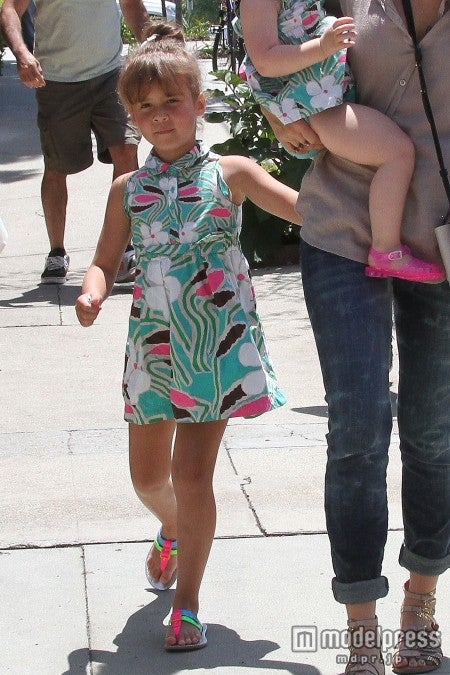 さらにふたりとも、サンダルはネオンカラーでトレンドを意識。赤ちゃんの時からパパラッチされ続けて、完全にカメラ慣れしているオナーちゃんはしっかりカメラ目線になっています。