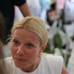 レッドカーペットと違ってグウィネスのファッションは白の爽やかワンピ、メイクも薄め。