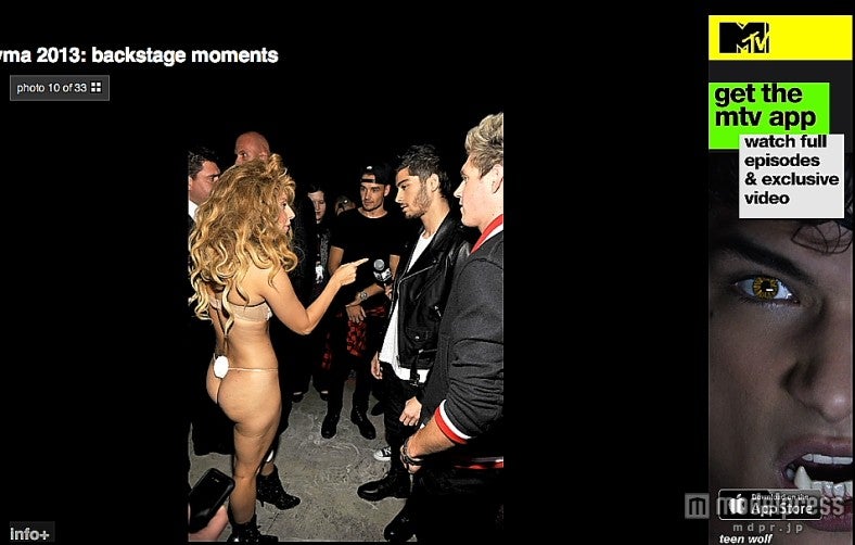 ベストサマーソング賞にワン・ダイレクションの「ベスト・ソング・エヴァー」が選ばれたとき、なぜか場内にはブーイングが起こり、それを聞いたガガはちょっと驚いていた様子だったそう。その後、貝殻ビキニのままバックステージへと向かいワン・ダイレクションと対面! レディー・ガガとワン・ダイレクションという人気者同士の豪華ショットが実現しました!