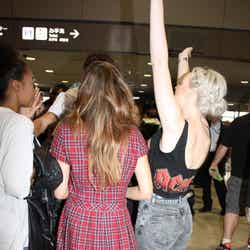 成田空港には朝早くから、ミキサーズと呼ばれる大勢のファンが、メンバーの写真を貼って作ったバナーなどを持って待機。ガールズが姿をあらわすと、大歓声が空港内に響き渡りました!