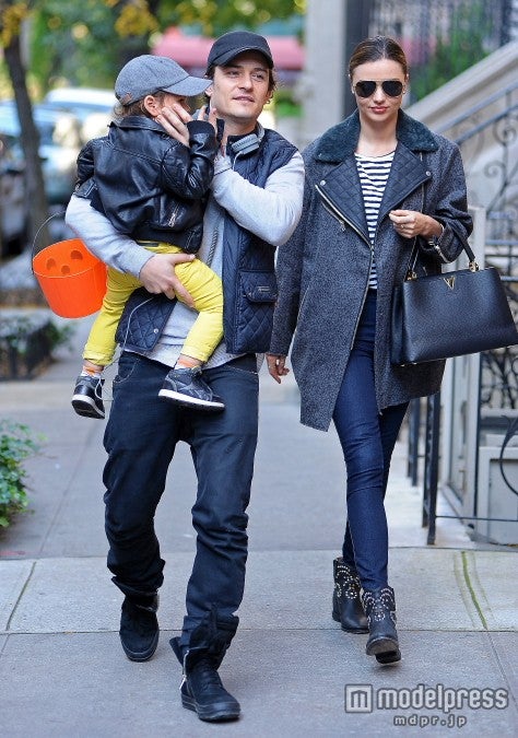 電撃離婚のミランダ・カー、オーリーの頬にキス 親子3人で仲よし外出