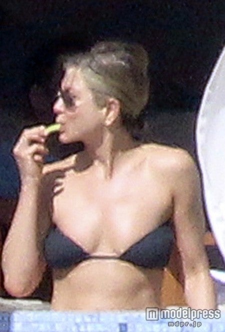 ジェニファー・アニストン、バカンス先でビキニがずり落ち