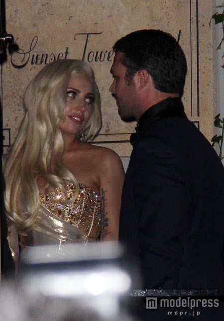 先日行われたゴールデン・グローブ賞授賞式のアフターパーティに恋人テイラー・キニーと一緒に現れたレディー・ガガ。