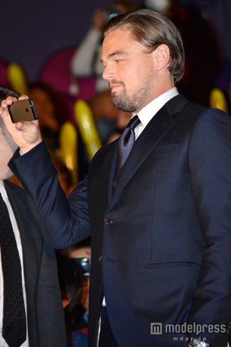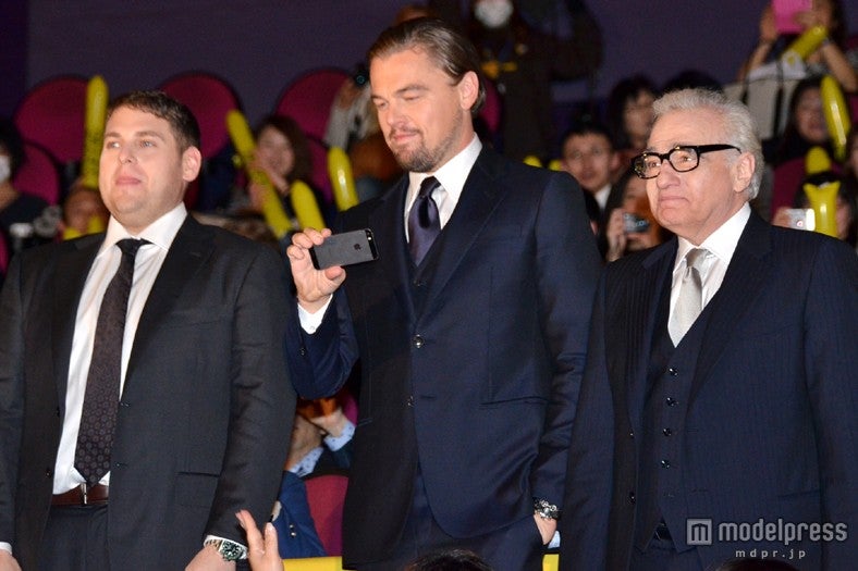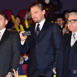 ディカプリオは28日、映画「ウルフ・オブ・ウォールストリート」(1月31日公開)のジャパンプレミアの舞台挨拶に、ジョナ・ヒル、マーティン・スコセッシ監督とともに出席。そこにディカプリオは、自身のスマートフォンを持参し、観客にカメラを向け撮影。満足気な笑顔をみせた。