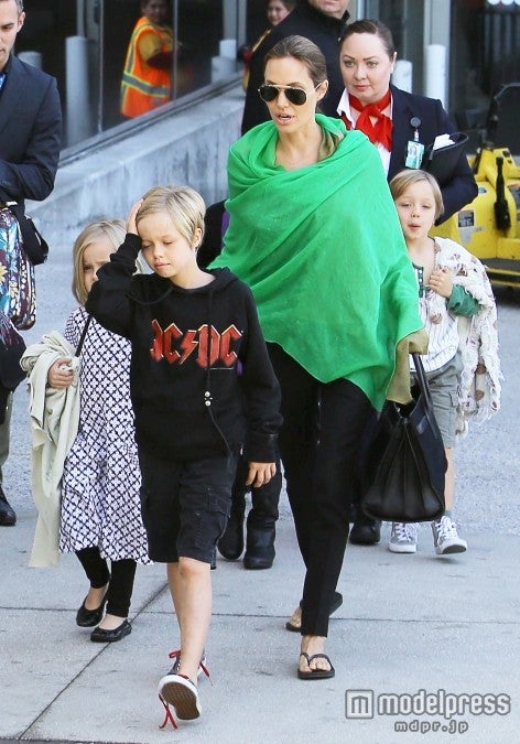 5日、アンジェリーナ・ジョリー(38)が婚約者のブラッド・ピット(50)、子どもたちとロサンゼルスに帰国したところがキャッチされました。