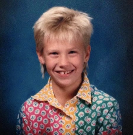 自らFacebookに投稿した9歳のときの写真は、80年代のロッカーを彷彿させるシャギーカットのショートヘア。