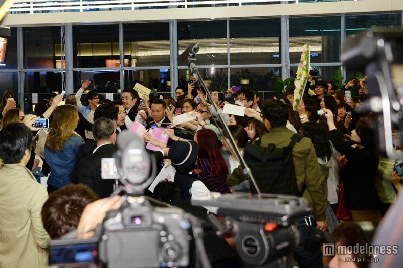 ファンの中には、「ミランダ~」と絶叫し、涙目になる人も。一時は規制のラインよりはみ出したファンが多く、空港はパニック状態に陥った。それでも、ミランダはファンに向かい笑顔で「ありがとう」と日本語で挨拶した。