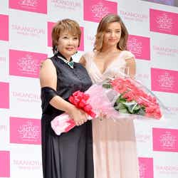 たかの友梨ビューティクリニックの2014年度新CMキャラクターに起用されたミランダは、4日都内で行われた会見に、胸元がセクシーなベビーピンクのロングドレスで登場。また、会見には美容家で同社代表取締役のたかの友梨も出席した。