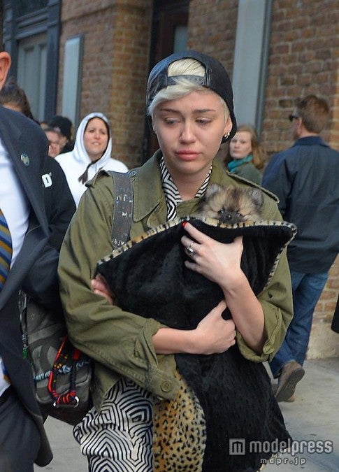 そんな彼女を励まそうと、4日、母ティッシュさんが新たに小犬を買ってくれたよう。マイリーはムーニーと名付けた小犬をツイッターでファンに紹介。5日には、ムーニーを抱っこしてニューヨークのホテルから出てきたところがキャッチされたのですが……。