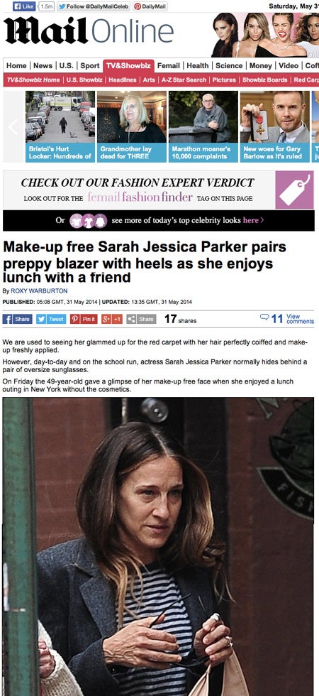 そんなサラ・ジェシカが、女友達とランチした際、スッピンをパパラッチされてしまいました!