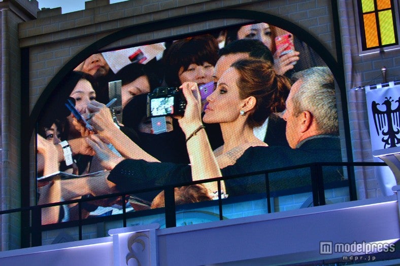 「Versace(ヴェルサーチ)」のブラックのドレス姿でマレフィセントさながらのミステリアスな雰囲気を醸し出したアンジーは、11ヶ月ぶり8度目の来日。マイクを持つと笑顔で「皆さん、お越しいただきまして本当にありがとうございます。ぜひこの新作を楽しんでください」と挨拶。実娘のヴィヴィアン・ジョリー・ピットと初共演するなど、思い入れの深い今作を「非常に独創的な作品。主人公が悪役ということは、とても珍しいことだと思います」と紹介し、「この映画の教訓は、たとえ人と見た目が違っても、いじめられて暗く落ち込んでも、それを乗り越えることができる。それは愛によって達成できるものだという強いメッセージが込められています」と語った。