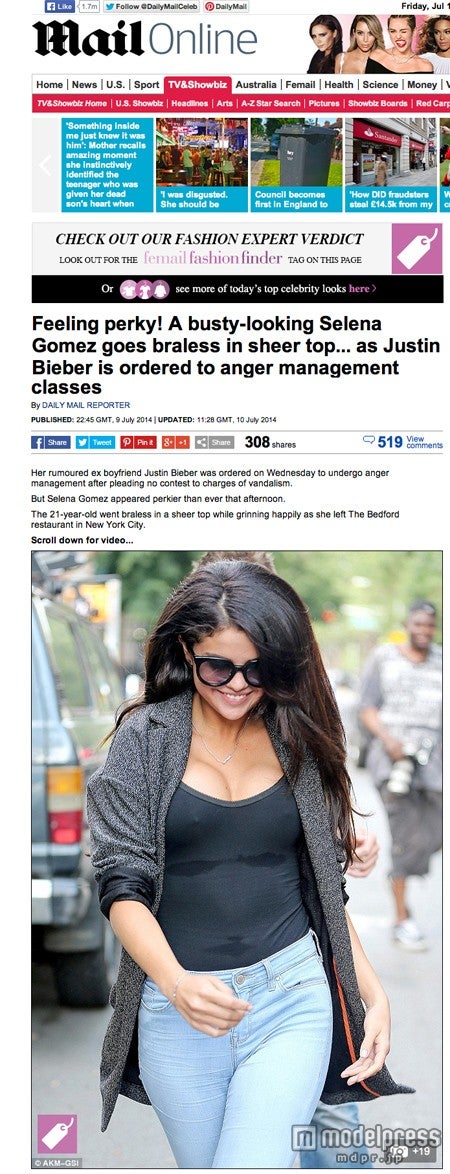 セレーナ・ゴメス、巨乳ノーブラ写真をパパラッチ