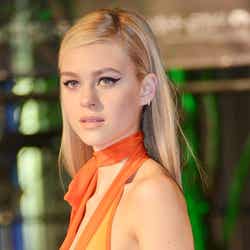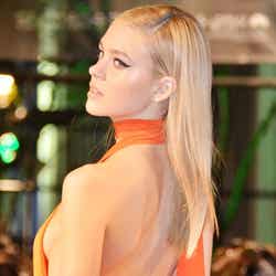 オレンジのホルターネックのロングドレスでレッドカーペットに登場したニコラは、美バストを大胆に披露。日本のファンの視線を独り占めにした。