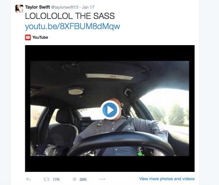 勤務中、パトカーを運転しながらテイラー・スウィフトの『Shake It Off』を口パクで歌う警官の動画がYouTubeにアップされ、現在2700万回以上も再生を記録し、話題になっています!
