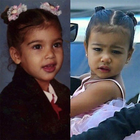 お団子状にまとめているヘアがキュートなノース・ウエストちゃんですが、インスタグラムにアップされた写真から、実はキムも同年齢の頃に同じ髪型にしていたことが判明!