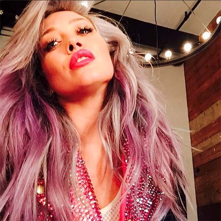 ヘアをグリーンからピンクにチェンジしたヒラリー・ダフ(27)。