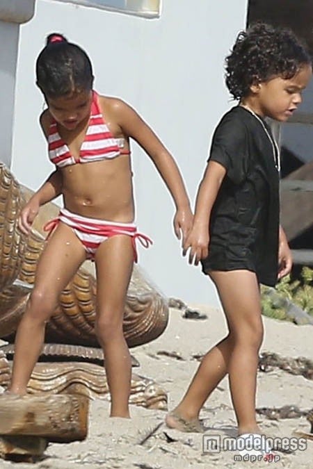 親子水入らずで、モロッカン君とモンローちゃんとビーチで遊んでいたマライア。