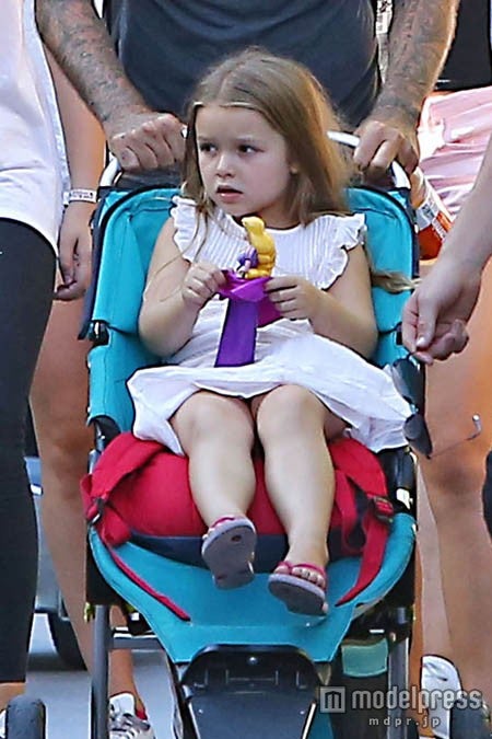 英ウェブサイト「Mail Online」によると、4歳のハーパー・セブンちゃんがベビーカーに乗っているのは、広大なパークをスムーズに移動するためで、レンタルしたのだとか。