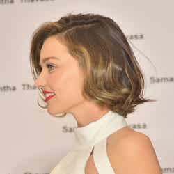 来日中のスーパーモデル、ミランダ・カーが16日、都内にて行われたミューズを務めるバッグブランドの新CM発表イベントに登壇。大胆なカッティングで美背中があらわとなったセクシーなロング丈のドレス姿で魅了した。