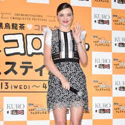 12日から来日中のスーパーモデル、ミランダ・カーが13日、東京・下北沢で行われたフェスティバルのオープニングセレモニーに出席。エレガントなモノトーンの小花柄ワンピースを着こなし、美脚を披露。美の秘訣を問われ、「生活にはバランスが必要で、我慢ばかりではダメ。好きなものを食べるという自分へのご褒美も精神面で大切です」と語り掛けた。