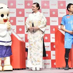 川崎フロンターレの小林悠選手とともに登壇したミランダは着物姿を披露。「着付けの細かさが素晴らしい。美しい着物を着られることができて嬉しく思います」と感激し、美しい姿に小林選手が「綺麗でびっくりしています」と見惚れると、「どうもありがとう」と日本語で感謝した。さらに、ミランダは第2子となるハート(Hart)くんが誕生した2018年を「大変可愛いです。2人の息子に恵まれ母親として充実した1年になりました」と回顧。自身初となった書き初めでは、「愛」の字を「すべてのことは心から、愛から生まれると思っています。1年をはじめるにあたり、愛を込めて書き初めをさせていただきました」という思いのもと披露し、「初めは緊張しました。普段はこんなに入り組んだ字を書くことがないので。でも、非常に楽しむことができました。もっともっと練習をしてもっともっと書道をやってみたいなと思いました」と次のチャレンジに向け意欲的な様子を見せた。