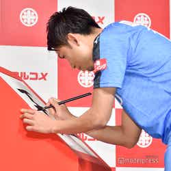 来日中のミランダ・カー、着物姿で“初”書き初め 「美しさの秘訣は?」への回答で報道陣沸かす