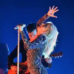 今回ガガは、映画のイメージとは異なり、ストーンが隙間なくちりばめられた派手派手しいタイツ風衣装登場。“ガガ様”のイメージそのままに、ヘッドバンギングや足を振り上げる力強い演出で同曲を熱唱した。
