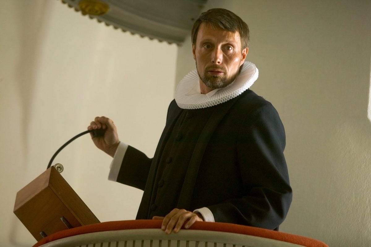 今作でマッツ・ミケルセンが演じるのは、穏やかながら度を越えた楽観主義者、短パン姿の型破りな牧師イヴァン。一見すると健全な思考の持ち主だが、徐々に常軌を逸した言動や異常性が滲み出てくる、という役どころ。