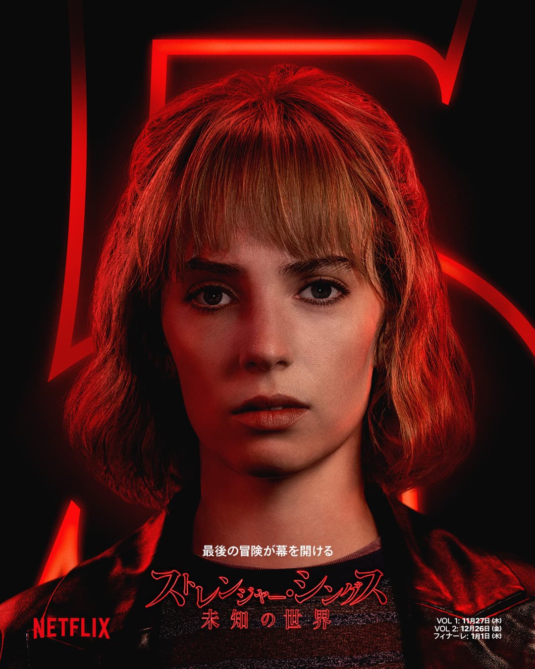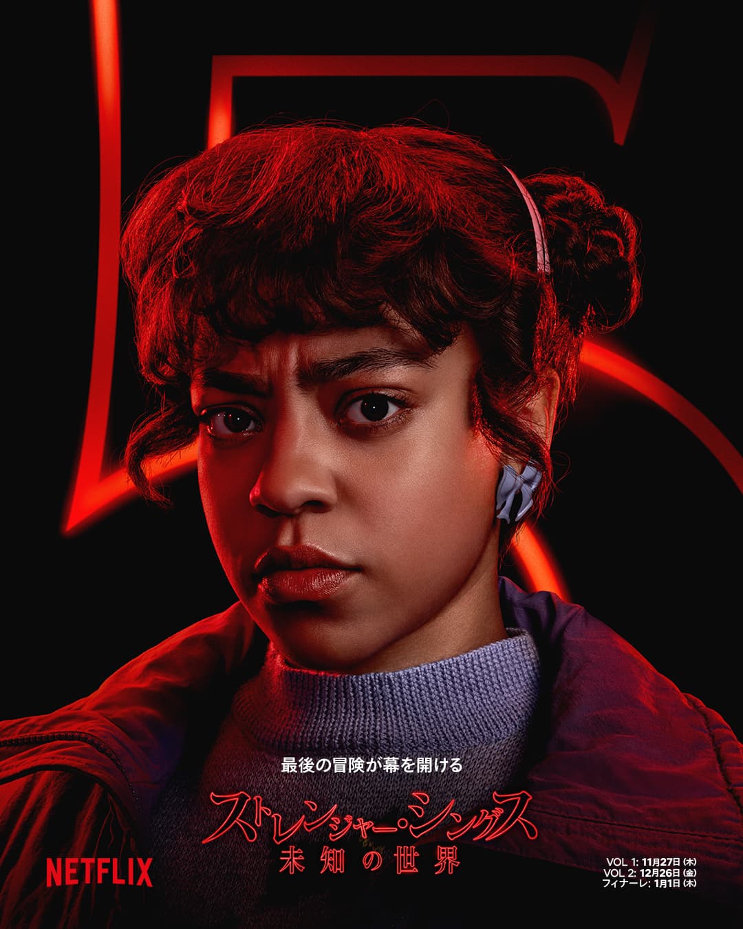 そしてついに迎える最終章では、仲間たちがシリーズ最大の脅威・ヴェクナを倒すために再び団結――。人間、そして現実世界への恨みから、ホーキンス全体をゆっくりとむしばみ、人々の心までも支配しようとするヴェクナに対し、仲間たちは家族や仲間と手を取り合い、街と日常を守るために戦う。解禁となったキャラクターポスターは、シーズン1から数々の敵に立ち向かい、心身ともに大きな成長を遂げてきたホーキンスの仲間たちの、フィナーレを締めくくる誰一人見逃せない面々が写し出されている。