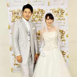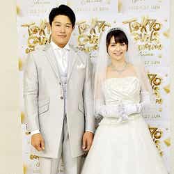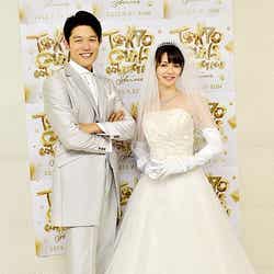 インタビューは、9月27日に東京・国立代々木競技場第一体育館で行われたファッションフェスタ「第21回 東京ガールズコレクション2015 AUTUMN/WINTER」(通称:TGC)のバックステージにて実施。ステージにはウェディングドレスとタキシードで登場。淡い光に照らされたランウェイは、まるでヴァージンロードのようで、お似合い過ぎる2人に観客はうっとりしていた。