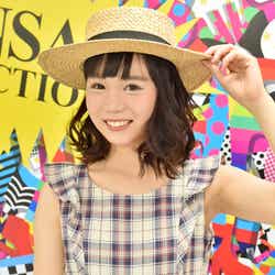 やすだはチェックワンピースにストローハットを合わせた爽やかなサマースタイルを着こなした。緊張した面持ちながらも声援にはにっこり。ランウェイ先端ではポーズも決め、無事に初舞台を終えた。