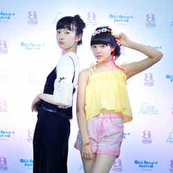 松野は「Honey Cinnamon」のステージ、中山は「SPINNS」のステージにそれぞれ登場。松野は黒のキャミソールに白のブラウスを合わせた甘めのモノトーン、対して中山はイエローのキャミソールにピンクのショートパンツを合わせたカラフルなコーディネートで観客を沸かせた。