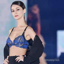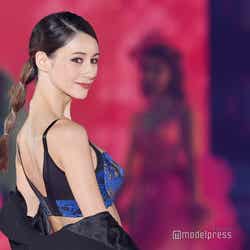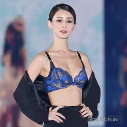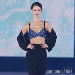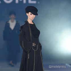 この日は、自身が立ち上げたファッションブランド「CAROME.」にモデルとして登場。レースがあしらわれたトップスにジャケット、パンツを合わせたオールブラックコーデを着こなし、クールにランウェイを歩いた。他にもボディメイクランジェリーブランドのステージでは美しいバストを大胆に披露。抜群のスタイルが際立つパンツルックで、会場の視線を釘付けにした。