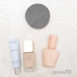 ― ベースメイクに一番こだわっているということですが、アイテム以外にこだわっているポイントは?鶴嶋:「肌が綺麗」と褒めてもらえることは多くて、それをもっと伸ばしたいなと思ってからベースメイクやスキンケアにハマってしまって、ファンデーションを塗るともろもろしてきて逆に汚く見えちゃうのが嫌だったんです。だからもっと自分の肌が綺麗に見える塗り方はないのかなと思って塗り方にはすごくこだわっています。手で塗るんですけど、化粧水を塗るみたいにファンデーションも下地も全部絶対に伸ばさないように少しずつポイントでつけて叩き込んであげる感じで優しく塗るのがポイントです。線の跡がついちゃう気がして、下地とか一気に出してバッーと伸ばしている人を見ると「ありえない!摩擦が…!こうやって塗った方がいいのに」と思って心配になります(笑)。丁寧に塗るだけでお肌が綺麗に見えるんです。