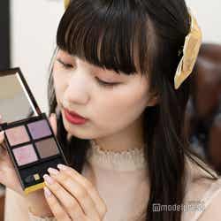 ― メイクはどんどん変化していってると思うんですけど、ご自身で「昔と比べて変わったな」と思う部分は?鶴嶋:やっぱり中学2年生くらいのときにモデルプレスさんに初めて取材して頂いた頃は、赤ちゃんみたいな感じが理想だったので、マスカラしちゃうと大人っぽくなると思ってマスカラはしていなかったです。シャドウもほぼしていなくてチープとリップフォーカスなメイクでした。そこから徐々に変わってきて高校1年生くらいからは韓国っぽいメイクが好きになってきたので、色素薄いカラコンに明るい眉毛でティントで赤リップはっきりみたいなメイクが好きでした。高校2年生くらいから段々今のメイクに近づいてきて、クールめというか今よりもっと大人っぽいメイクが好きだったかも。アイシャドウが濃くてリップは絶対マット、チークもしないみたいな。今は逆に若さが戻ってきたんです(笑)。昭和のアイドルの方を見ている影響なのか可愛らしいメイクをまたしたいと思う時期になってきて、私はリップをチークにそのまま使うんですけど、3年ぶりにチークを入れるようになったり、ツヤツヤなリップを好きになったりとか色々変化がありますね。